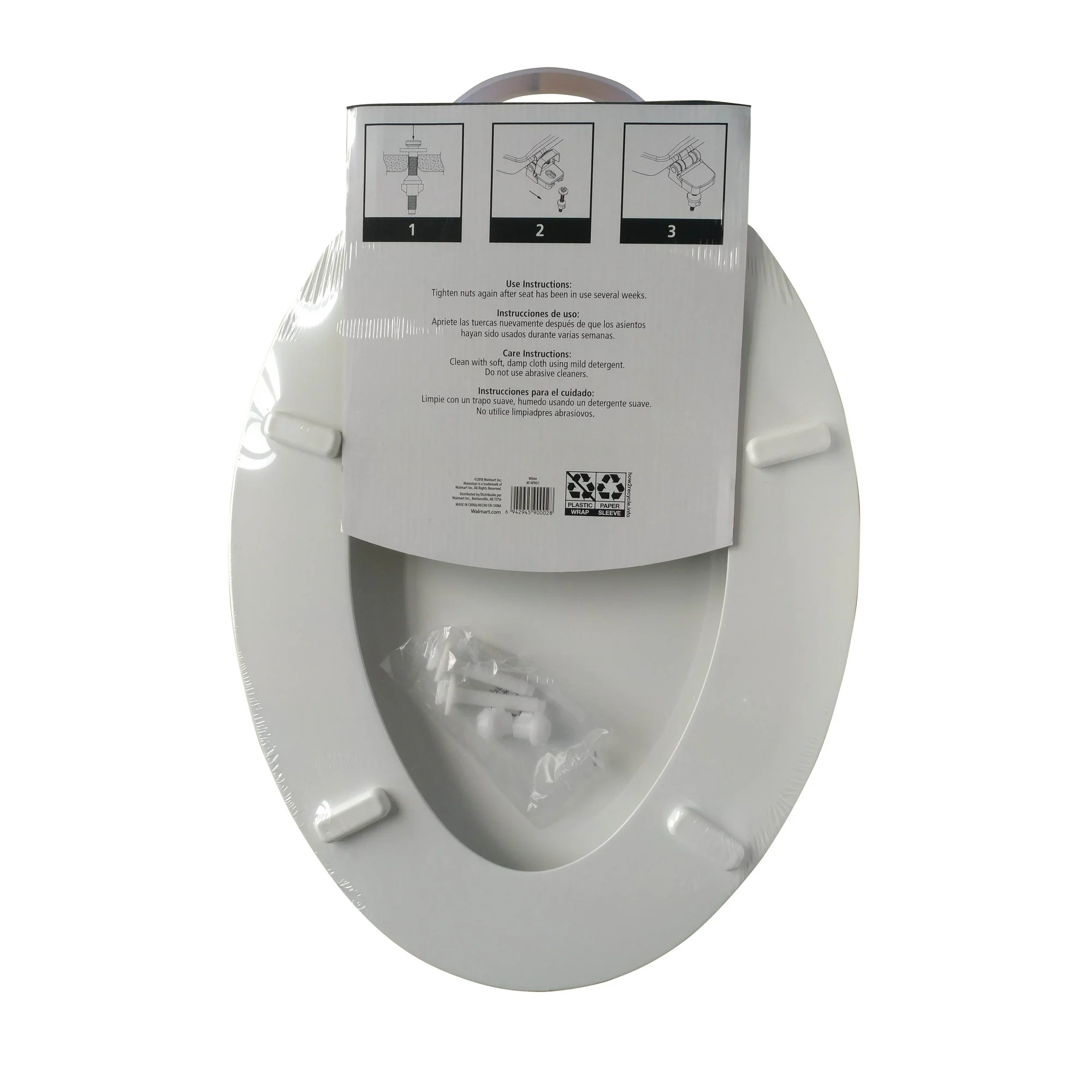 - Mainstays Elongated White Wood Toilet Seat, Easy Clean